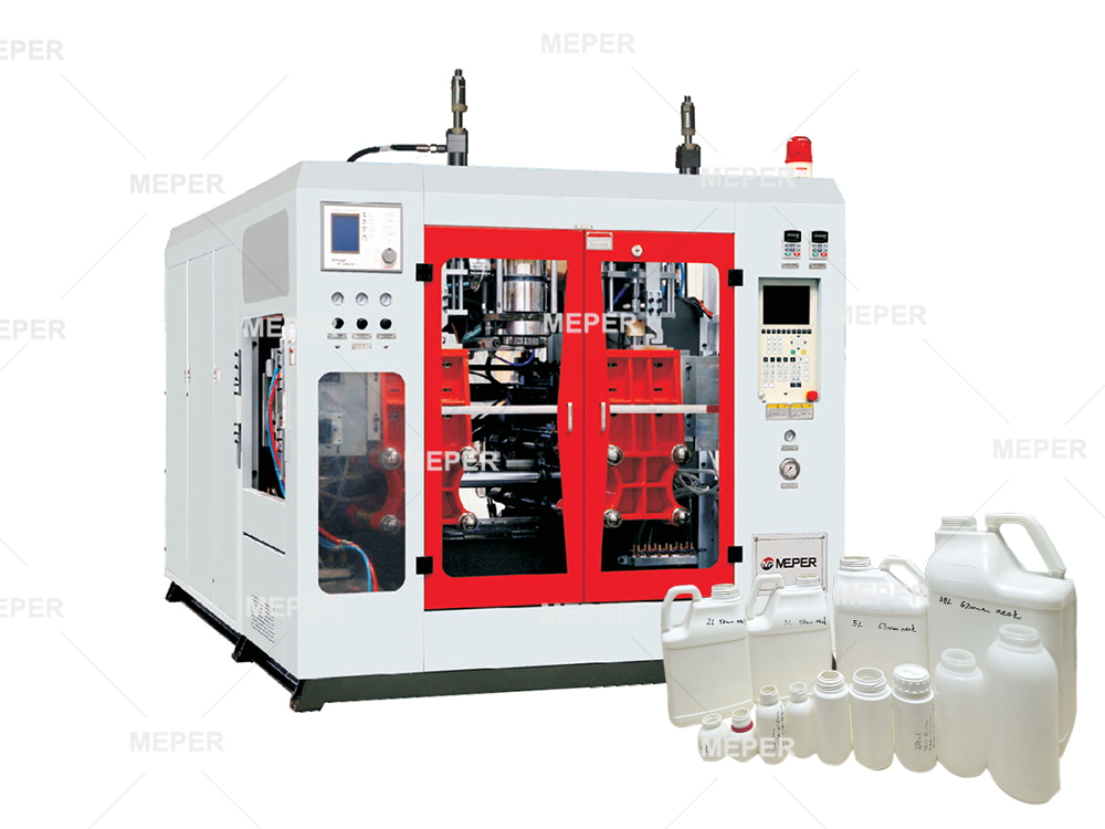 A máquina de moldagem por sopro de extrusão MP80D é projetada especificamente para fabricar garrafas de 10 ml até o máximo 10L. É acionado hidráulico com o sistema de controle eletrical Acrate. O MP80D possui estações duplas para aumentar a eficiência da produção. Além disso, ele tem uma variedade de opções de cabeças. Com mais de 10 anos de sucesso no mercado, o MP80D é atualizado para ser um dos modelo mais confiável e popular do mundo.